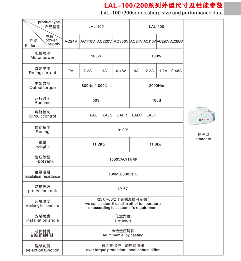 LAL-100、200系列外型尺寸及性能參數